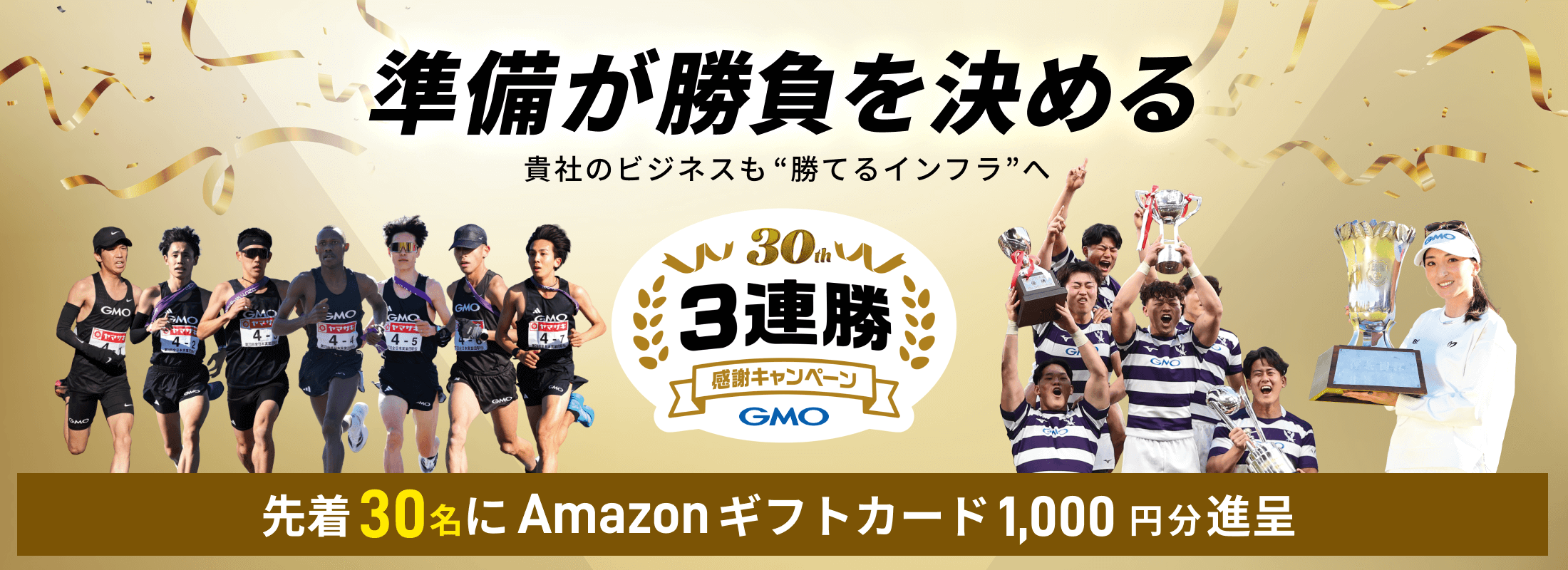 30周年 3連勝・感謝キャンペーン今なら、先着30名にAmazoneギフトカード1,000円分進呈