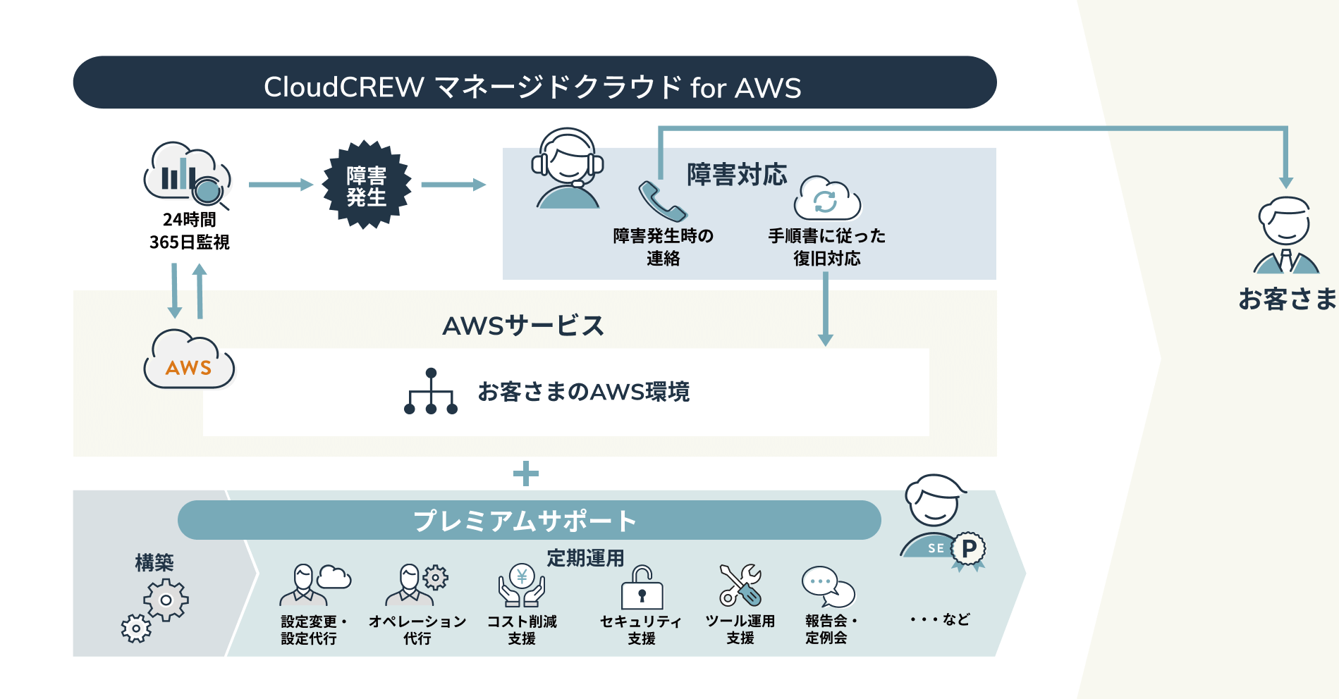 マネージドクラウド for AWSなら監視/障害対応/運用保守/改善提案/請求代行までおまかせ